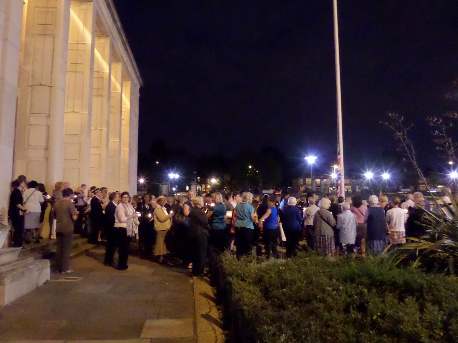 After several readings and performances by local people, guests then lit candles outside whilst the band played Highland Cathedral as a moment of reflection. The flag was lowered, a beacon lit and the last post was played as the congregation stood for a minutes silence.