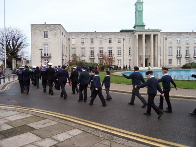 The parade began outside the William Morris Gallery and followed the band down Forest Road to the Town Hall where a ceremony was held.