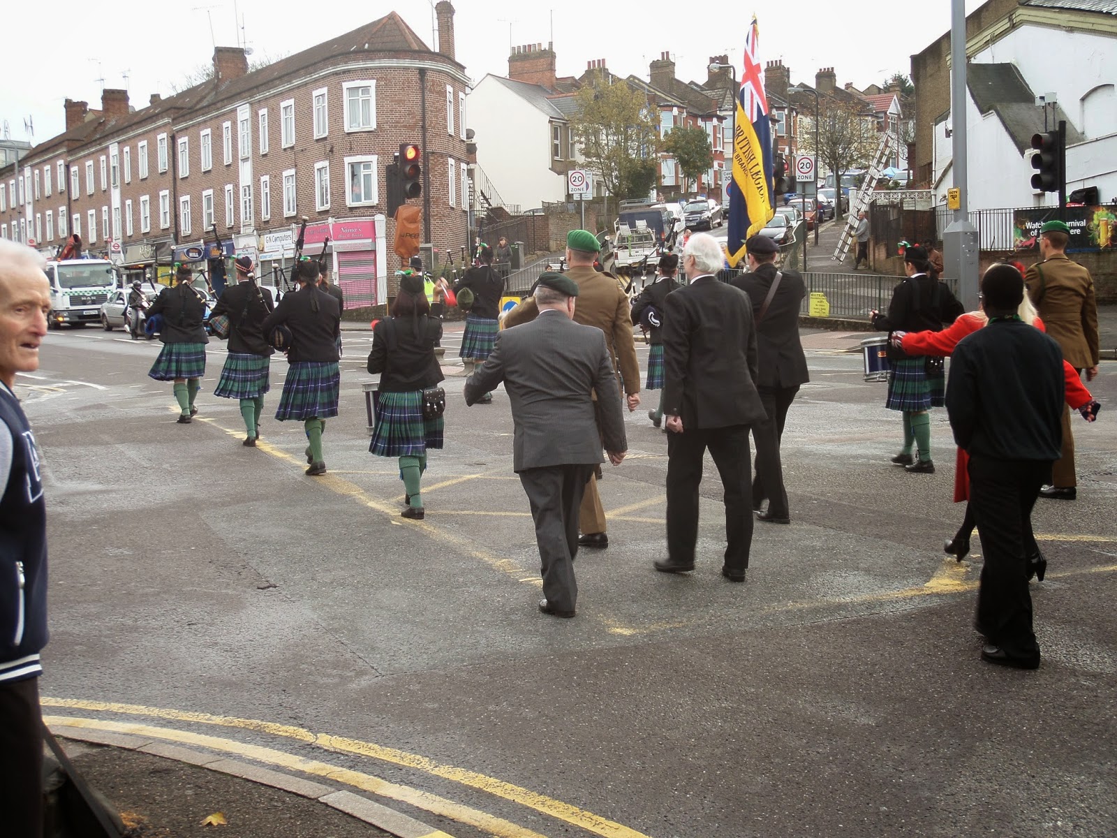The parade began outside the William Morris Gallery and followed the band down Forest Road to the Town Hall where a ceremony was held.