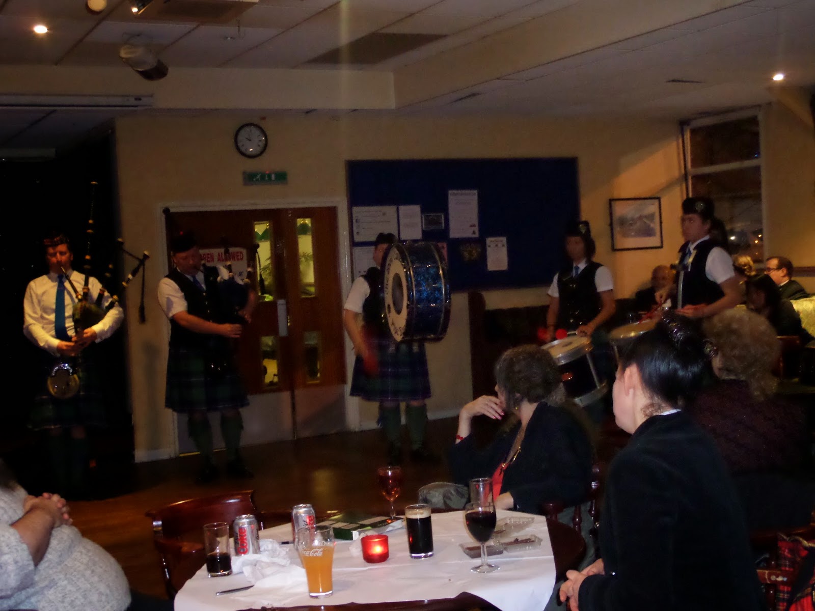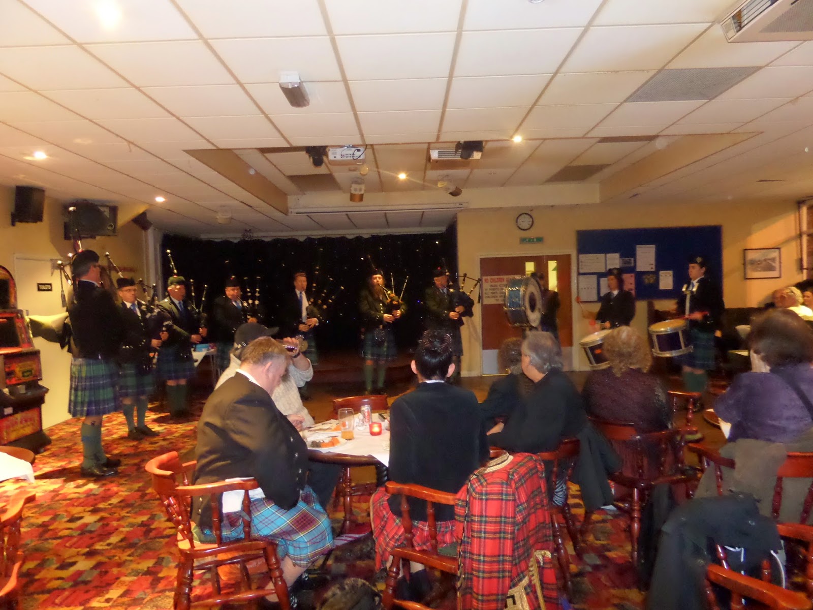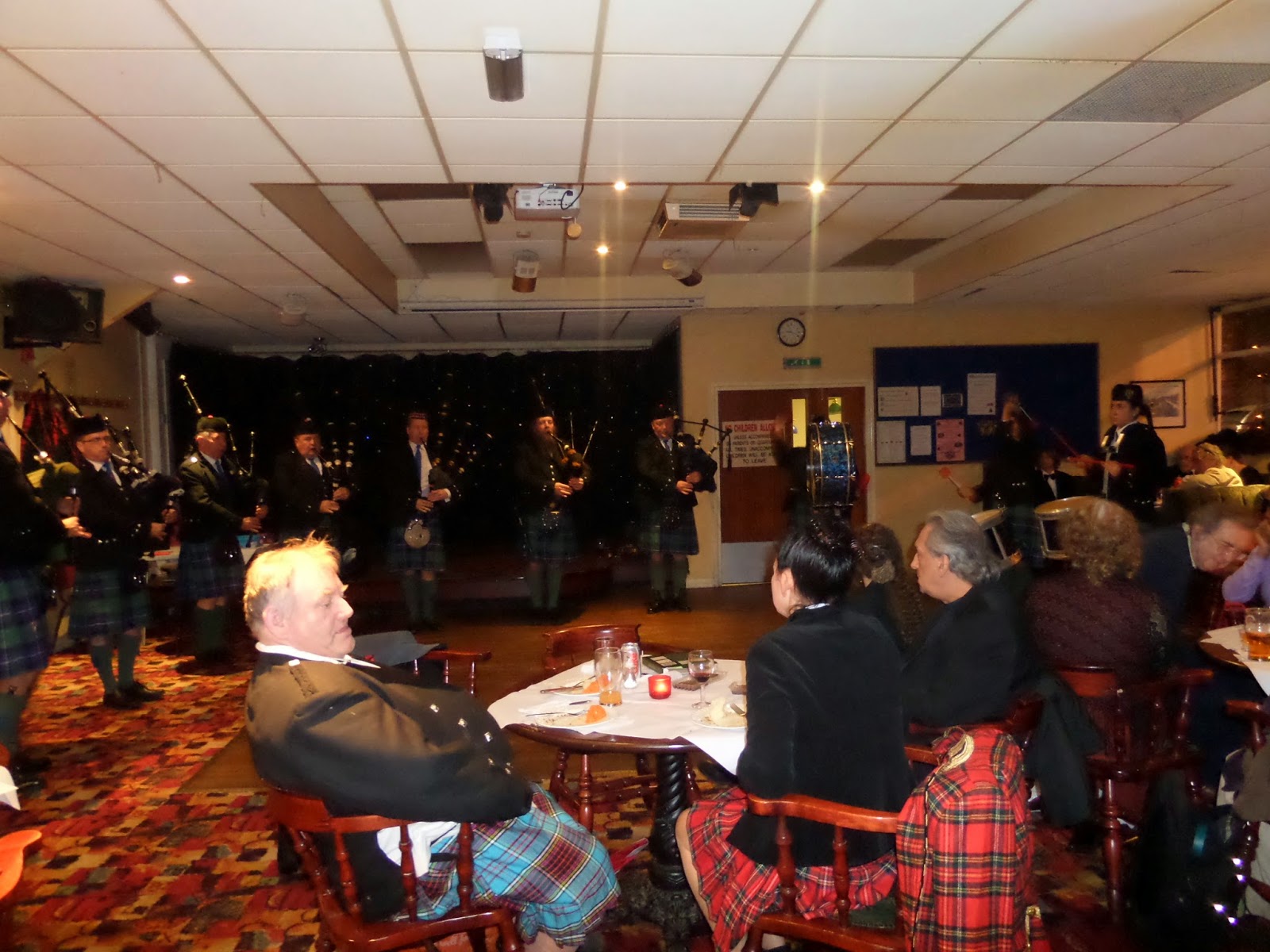 Last night The Stow Caledonian Pipe Band entertained an audience for the St Andrews Dinner and Dance at Walthamstow Social Club.