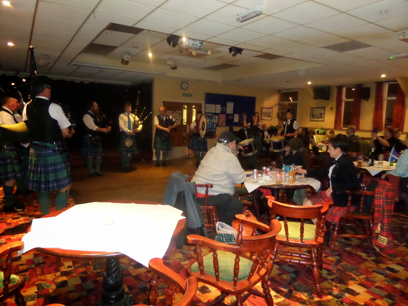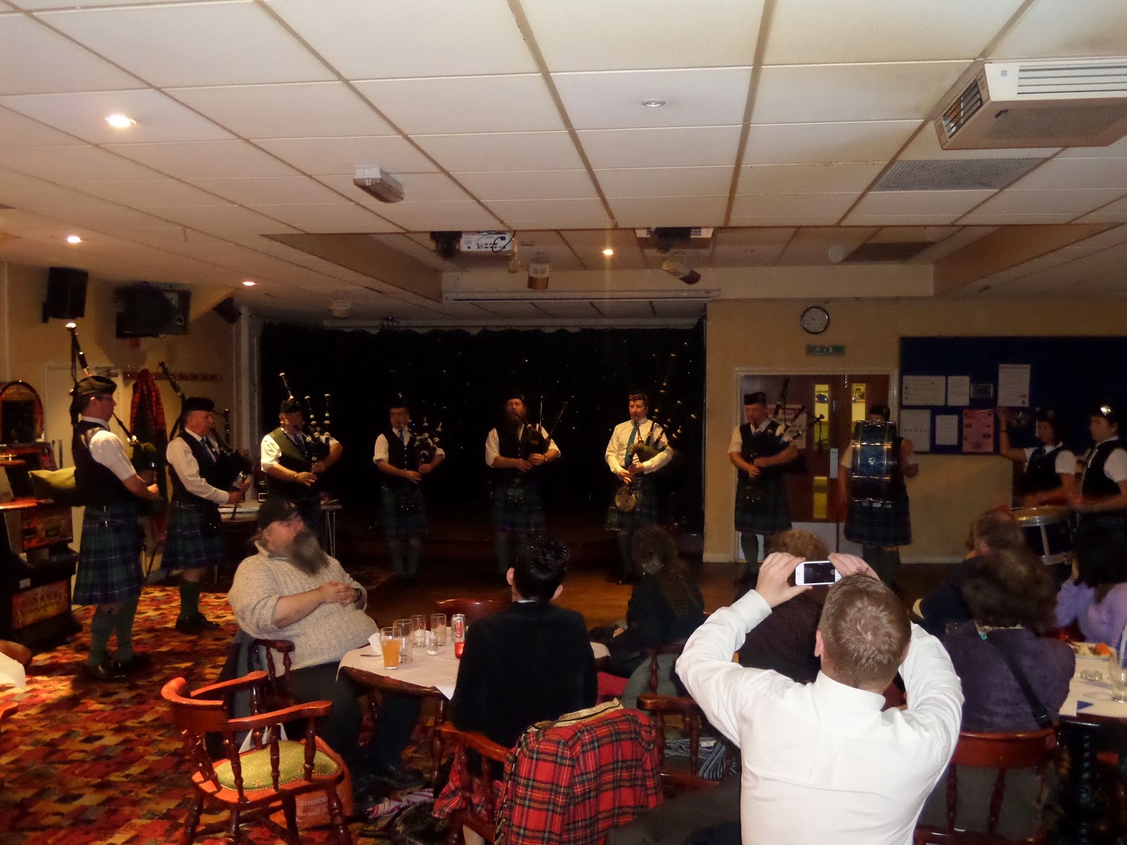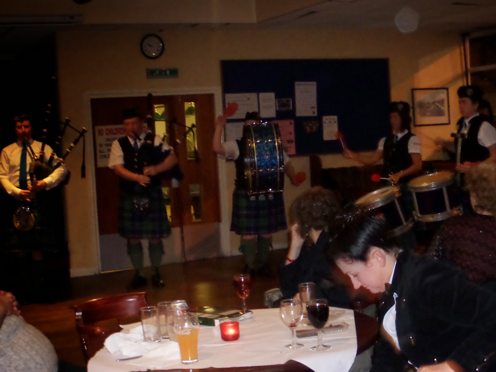 Last night The Stow Caledonian Pipe Band entertained an audience for the St Andrews Dinner and Dance at Walthamstow Social Club.