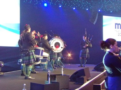 After welcoming guests arriving at the Battersea Evolution venue, we piped them into the awards hall where we gave a small performance.